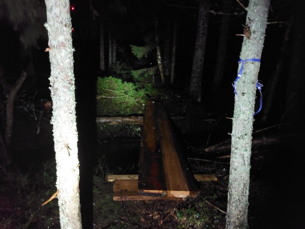 Obs! Var försiktig. Det är för närvarande extremt mycket vatten i skogen. Spångar och broar kan vara mycket hala, särskilt vid minusgrader. Visa extra försiktighet och använd stadiga, vattentåliga skor.