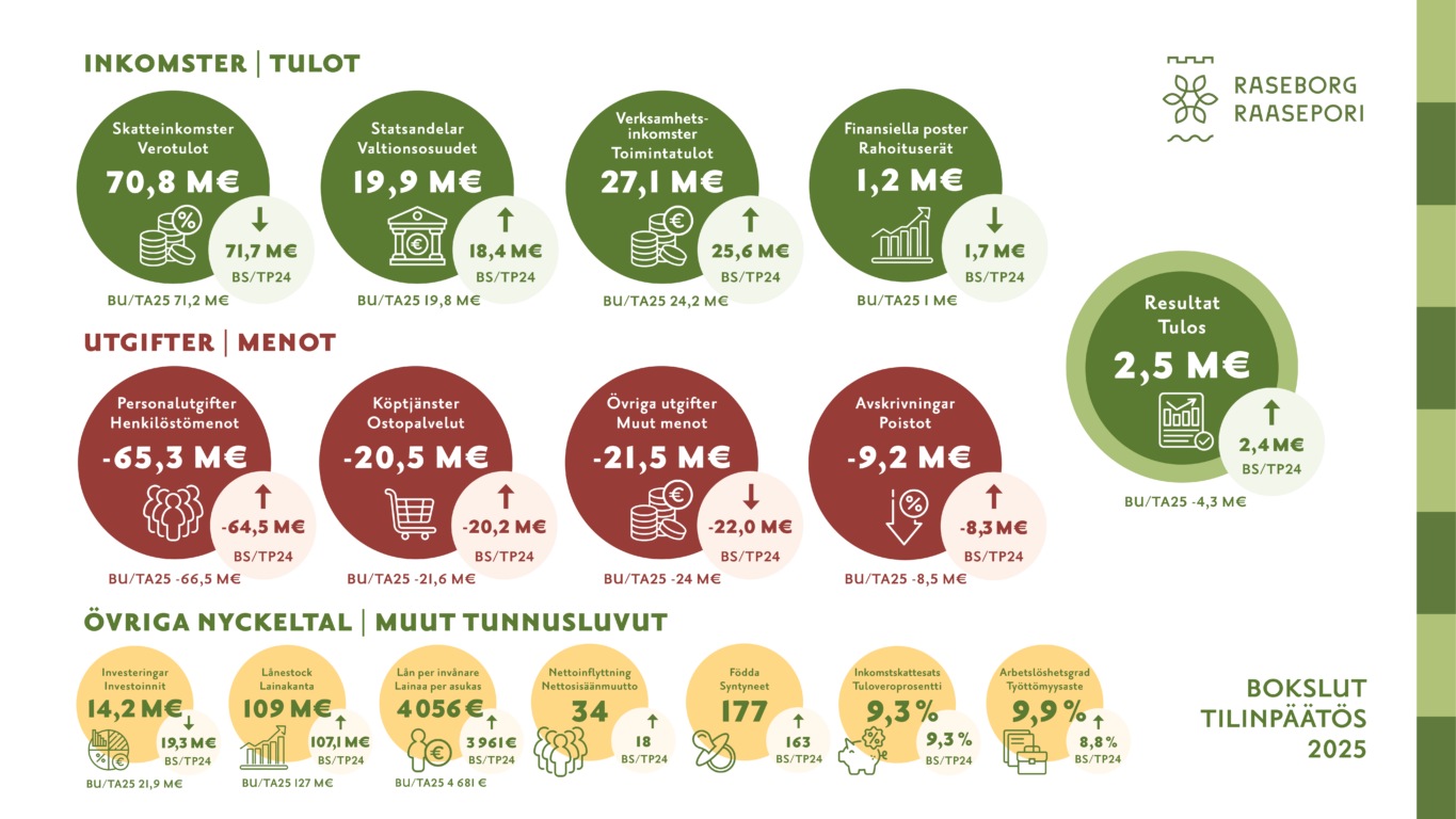 Raaseporin kaupunginhallitus on käsitellyt vuoden 2025 tilinpäätöksen. Tulos on 2,5 miljoonaa euroa ylijäämäinen.
